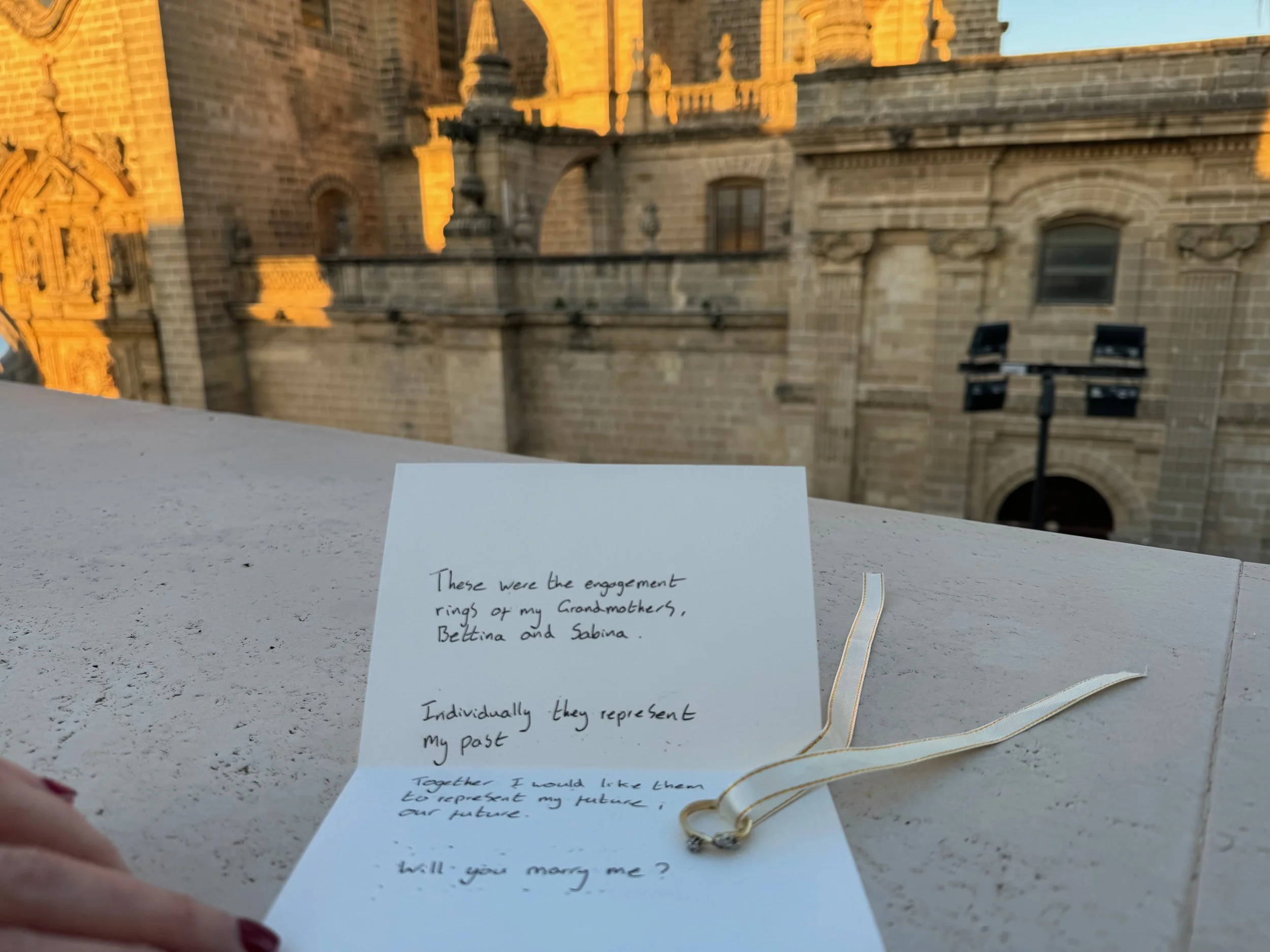 We got engaged at the Tio Pepe Sherry Bodega in Jerez de la Frontera (which is lovely). At the Bodega the cellar-master some years ago shared some crumbs from his lunch with the cellar mice and allowed them some sherry too. This affection for the mice has continued to this day and the cellar-master provides a glass with a small ladder so that the cellar mice can have some sherry at their leisure. Their favourite is the cream sherry, which you will have the opportunity to sample at our wedding.